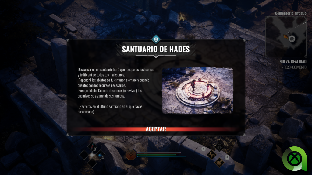 Estos santuarios también nos servirán para descansar, recuperando de ese modo el total máximo de pociones de salud y de furia que podremos llevar como máximo. A consecuencia de esto, se realizará una especie de respawn en todos los enemigos del mapa y volverán a aparecer en nuestro camino (¿alguien ha dicho hoguera?). Estos santuarios también nos podrán servir como puntos de teletransporte, pudiendo desplazarnos en un instante a otro santuario ya desbloqueado previamente. Por último, también será el lugar donde podamos abrir nuestro árbol de habilidades, el cual pasaremos a describir a continuación.