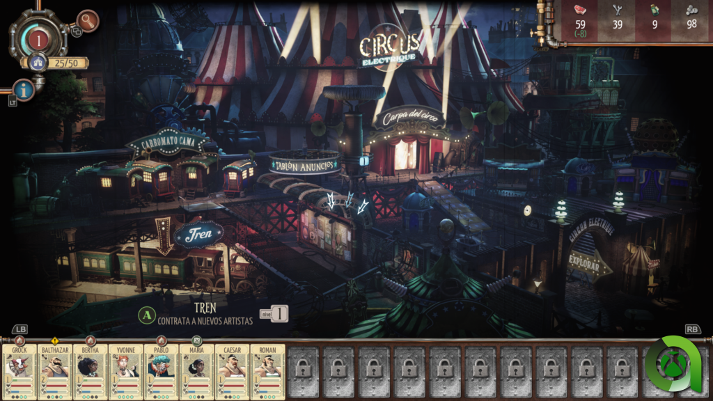 Circus Electrique, publicado por Saber Interactive y desarrollado por Zen Studios, es un RPG táctico por turnos con mecánicas de gestión ambientado en un circo en el Londres victoriano. En este juego controlaremos a muchos personajes, lucharemos contra multitud de enemigos y jefes, exploraremos, y gestionaremos nuestro propio circo.