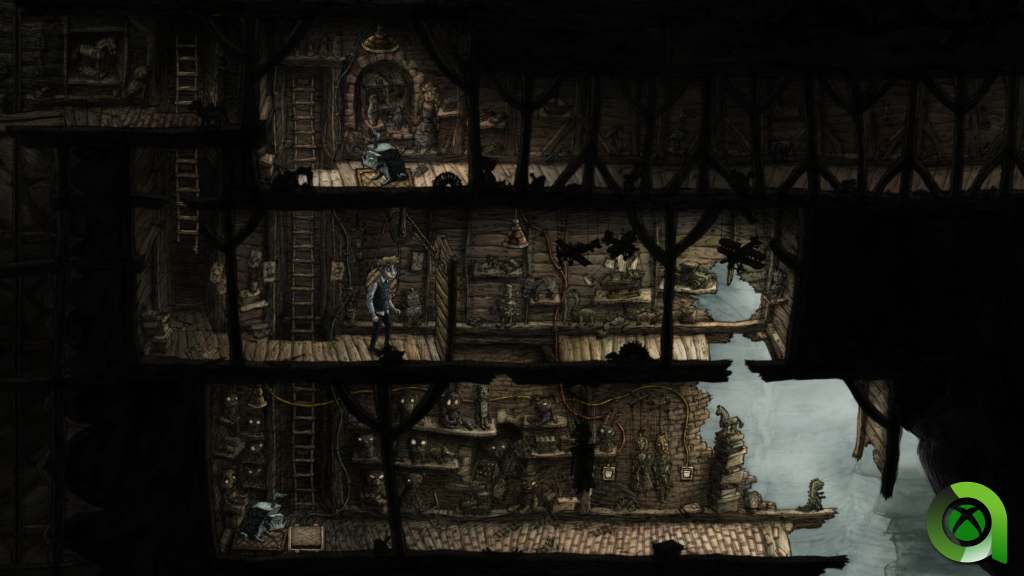 Al mismo tiempo que avanzamos por estas construcciones, es posible echar un vistazo al exterior de vez en cuando. Este detalle que cobrará su sentido cuando lo juguéis. La iluminación también goza de un papel importante, aunque eso es algo que abarcaremos más adelante. En definitiva, Creaks es un juego bellísimo que toma el relevo de Machinarium, con un apartado visual que parece extraído (una vez más) directamente de un cuadro.