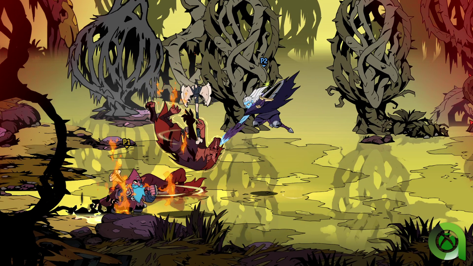 Dejando esto a un lado, a los mandos, Absolum, es realmente satisfactorio. No es algo que deba sorprendernos teniendo en cuenta el resultado que nos mostró la compañía en Streets of Rage, sin embargo, llevábamos mucho sin jugar a un beat ‘em up tan bueno. El juego tiene un sistema de combate bastante simple pero a la vez profundo. Y es que, en sí, sólo contamos con dos botones de ataque, uno para golpes ligeros y otros para ataques pesados. Combinando ambos podremos desarrollar poderosos combos con los que hacer frente a las hordas de Azra.