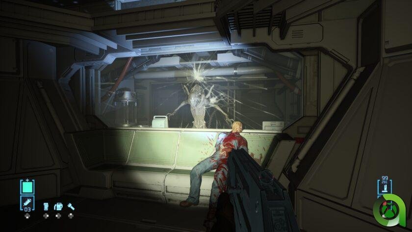 El gunplay es funcional aunque es cierto que la sensación de impacto es bastante inexistente. Por ejemplo, con el revólver nunca me ha quedado claro el número de impactos que puede llegar a recibir un xenomorfo. Claro, cuenta con un cargador de 6 balas, apretando el gatillo sin ton ni son debido a la cercanía del especimen. Algunos movimientos son algo exagerados y los aliens reaccionan, por momentos, de una forma poco natural a los impactos. Sí he notado más efectiva la escopeta, aunque es cierto que me hubiese gustado que se implementase un número mayor de inventario.