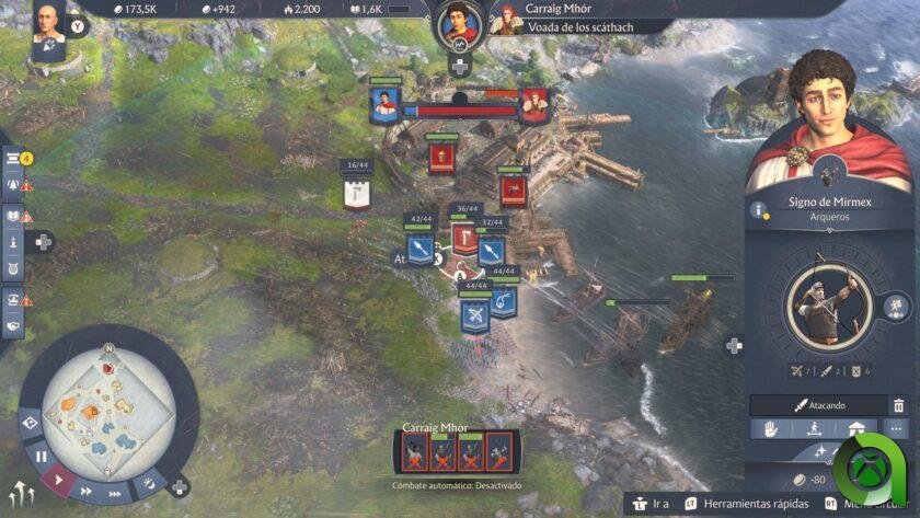 Un aspecto que ha mejorado bastante lo visto en anteriores títulos de la marca, es el combate. Sí, nos centramos en construir nuestra ciudad y todo lo que ello conlleva, pero la guerra está ahora más presente. No esperemos estar en combates constantemente, de hecho, estos llegan en un punto bastante posterior en la aventura principal (aunque es cierto que es accesible mucho antes). Pero cuando estamos en guerra, esta es muy intensa, ya que el costo de ir a la guerra como comenté en anteriores párrafos, es bastante alto.
