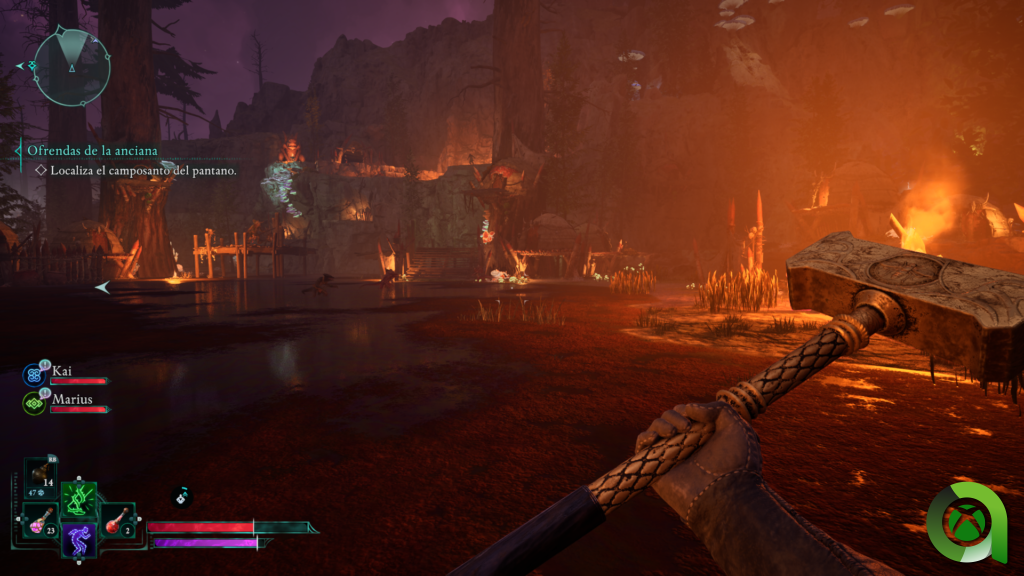 Aunque lo más importante es esa sensación de descubrimiento. Esto sabe realizarlo a la perfección, pues maravillándonos con sus hermosos paisajes, iremos descubriendo zonas que captarán nuestra atención. Descubriremos mazmorras que cuentan con un diseño correcto, escondiendo tesoros que valdrá la pena conseguir. Estos, podremos venderlos a comerciantes o usarlos para fabricar nuevo equipo en nuestro campamento. En este último, también podremos interactuar con los personajes que nos acompañan, adherir encantamientos a nuestras armas o activar tótems (que se encuentran perdidos por cada uno de los mapas) que nos aportarán habilidades pasivas. Por otro lado, en las ciudades podremos comerciar y aceptar misiones, aunque las he sentido con poca vida dado que los NPC se mantienen prácticamente estáticos en todo momento.