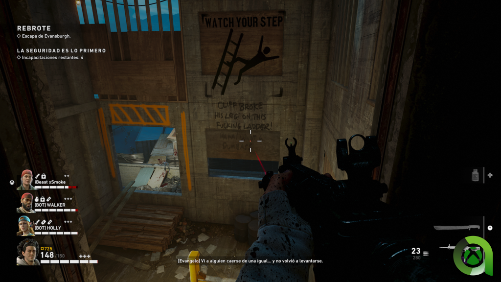 Y hablando de ambientación, el resto de efectos sonoros no se quedan para nada atrás. El sonido de los infectados es una auténtica pasada y te mantendrá pendiente de todo lo que ocurre en la partida, además de que nos permitirá anticipar lo que está por venir. De hecho, más de una vez me he encontrado en una casa y he tenido que salir huyendo al escuchar como los infectados intentaban derribar las puertas. A parte de esto, el sonido de las armas, así como el de los impactos, ya sea de bala como de armas cuerpo a cuerpo sigue manteniendo el listón haciendo que el frenesí de infectados, sangre y vísceras no pare.