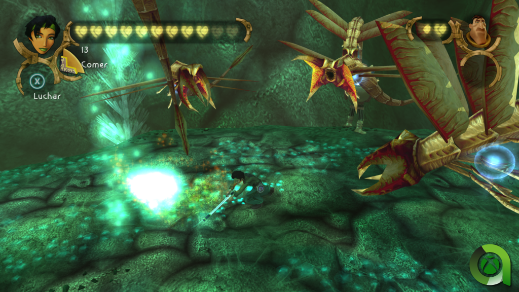 En esta remasterización he notado unos controles mucho más ergonómicos y exactos. En especial, valoro las secciones de sigilo (aunque los enemigos son un poco limitados). Sí creo que jugablemente es de lo mejor que nos otorga el juego. Pero donde realmente brilla es en su diseño de niveles y la concepción de su «mini» mundo abierto. Porque Beyond Good & Evil te permite descubrir nuevas zonas, persecuciones, carreras, infiltraciones… según vas avanzando. El juego te da la opción de completar la que más te interese. Esto siempre lo tenemos que coger con pinzas, pues en un momento determinado debemos conseguir una serie de perlas que sólo se consiguen realizando estas misiones secundarias.