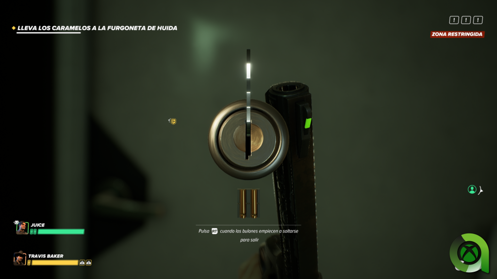 Dejando el gunplay a un lado, también desbloquearemos cerrojos, cajas fuertes, puertas de vehículos… Cargaremos con el botín haciendo que nuestro cuerpo sienta el peso de la carga, oscilando nuestra pantalla ligeramente unos grados hacia un lado. Correremos y escaparemos al más puro estilo Hollywoodiense para llegar al punto de evacuación. En algunos momentos podremos realizar algo de sigilo, eliminando a nuestros enemigos uno a uno explotando su gran hándicap, su poca inteligencia.