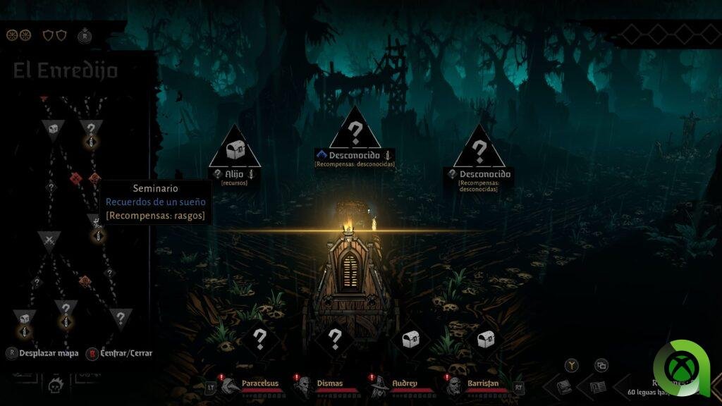 Dicho esto, la partida en Darkest Dungeon 2 tiene el principal objetivo de alcanzar una Montaña donde lucharemos contra un poderosos jefe. Para llegar a la misma tendremos que atravesar diferentes regiones con nuestro carruaje. Al final de cada región podremos descansar en una posada, donde podremos pertrecharnos así como descansar y proseguir nuestra aventura. En estas posadas podremos comprar objetos que nos ayudarán durante la siguiente región, además de intentar mejorar la relación de nuestros héroes.