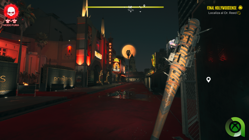 ¿A quién le importa la historia? Lo divertido en Dead Island 2 es machacar a los no muertos a diestro y siniestro. Y esto el título lo hace realmente bien. El sistema de combate está centrado sobre todo en el cuerpo a cuerpo y la verdad es que proporciona una experiencia muy intensa, visceral y cruenta. Resulta muy satisfactorio abrirte paso por los barrios de Los Ángeles a base de palos. Por lo general, los golpes se sienten muy contundentes aunque a veces ocurre lo contrario y parece que los zombies sean de papel. Pero ocurre muy pocas veces.