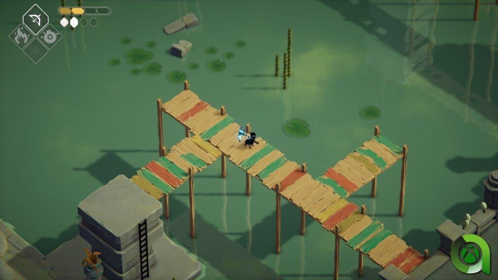 Cada uno de los diferentes biomas está lleno de puzles y secretos que tendremos que descubrir a lo largo de la aventura. Decimos a lo largo, ya que a medida que avancemos en el juego conseguiremos poderes mágicos que nos permitirán acceder a zonas a las que anteriormente no podíamos acudir. Todo ello, en un mapeado que se encuentra conectado de principio a fin. Algo que me ha dejado muy impresionado y que sencillamente me ha encantado. Gracias a la activación de palancas y la resolución de puzles, iremos abriendo nuevos caminos que a su vez estarán conectados con el resto del mapeado del juego. No deja de sorprenderme la cantidad de secretos que abarca este juego y que seguramente te hagan rebanarte los sesos tanto como a mi.
