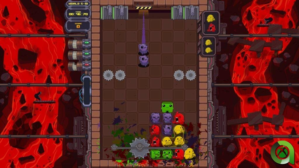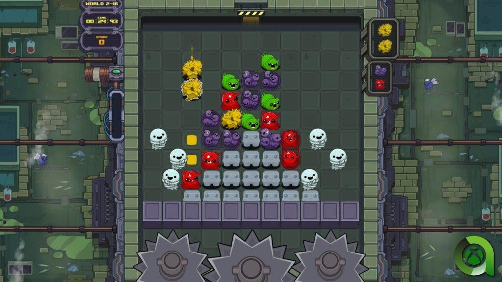 El título que hoy tenemos entre manos es fruto de la colaboración entre HeadUp Games (el desarrollador) y de Team Meat y los artistas originales de Super Meat Boy. Dr. Fetus’ Mean Meat Machine es una ingeniosa mezcla de los rompecabezas clásicos con los intensos elementos plataformeros que hicieron famoso a Meat Boy. Con una esencia inspirada claramente en Puyo-Puyo, este juego es un giro de tuerca al género de puzles y nos lleva de la mano a recorrer lugares ya conocidos de Super Meat Boy y Super Meat Boy Forever como el pintoresco bosque, el hospital y Salt Factory.