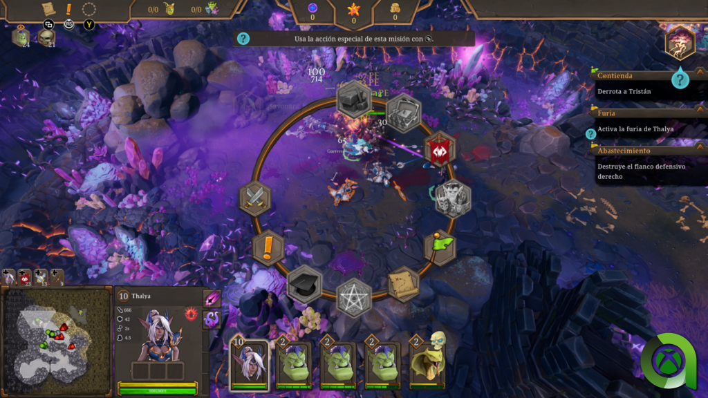 Como en entregas anteriores, Dungeons 4 mejora lo que ya era bastante bueno en sus entregas anteriores. Se maneja perfectamente con el mando de Xbox, lo cual hará que nuestra experiencia sea en todo momento cómoda con él. Tendremos una rueda de acciones que será accesible y visual a través de la pulsación de dos botones solamente. Sigue, por lo tanto, el buen trabajo que se ha realizado en otros juegos como Age of Empire II y IV siendo adaptados a un pad.