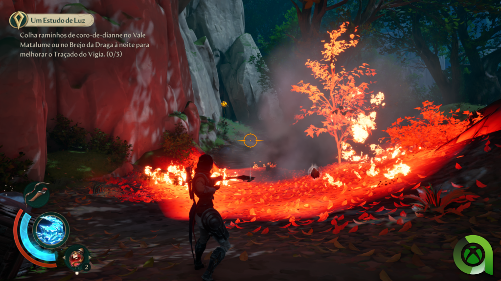 Durante nuestra aventura y en cada uno de los mapas, encontraremos una serie de materiales como madera, hierro, cristales… Que serán necesarios recolectar para forjar armaduras, armas o elementos indispensables para avanzar en la historia principal. Existen materiales que reforzarán más los niveles de resistencia contra el fuego, o hielo, por ejemplo. Además, mediante el campamento, también subiremos todos estos puestos a distintos niveles. Esto nos permitirá mejorar más nuestro equipo. En cuanto a las magias, hablaremos con Dahm y se desbloquearán mediante los hilos que recuperaremos de los colosos.