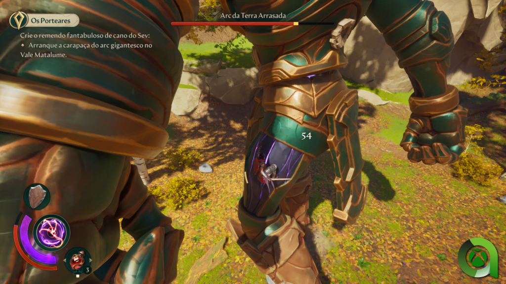 Eternal Strands luce realmente bien, pues su estilo gráfico así como su arte reflejan la belleza de sus paisajes. Nos quedaremos en más de una ocasión absortos mirando alrededor, así como disfrutando de los efectos lumínicos que acontecen durante los combates. Volviendo un poco atrás, para que nos hagamos una idea, cuenta con un apartado visual similar al de Immortals: Fenyx Rising. Esto desde luego es muy positivo. En la versión de Xbox Series X no he encontrado casi ningún bug o fallo que merezca la pena reseñar, si bien en momentos muy puntuales he sufrido alguna ralentización en los fotogramas.