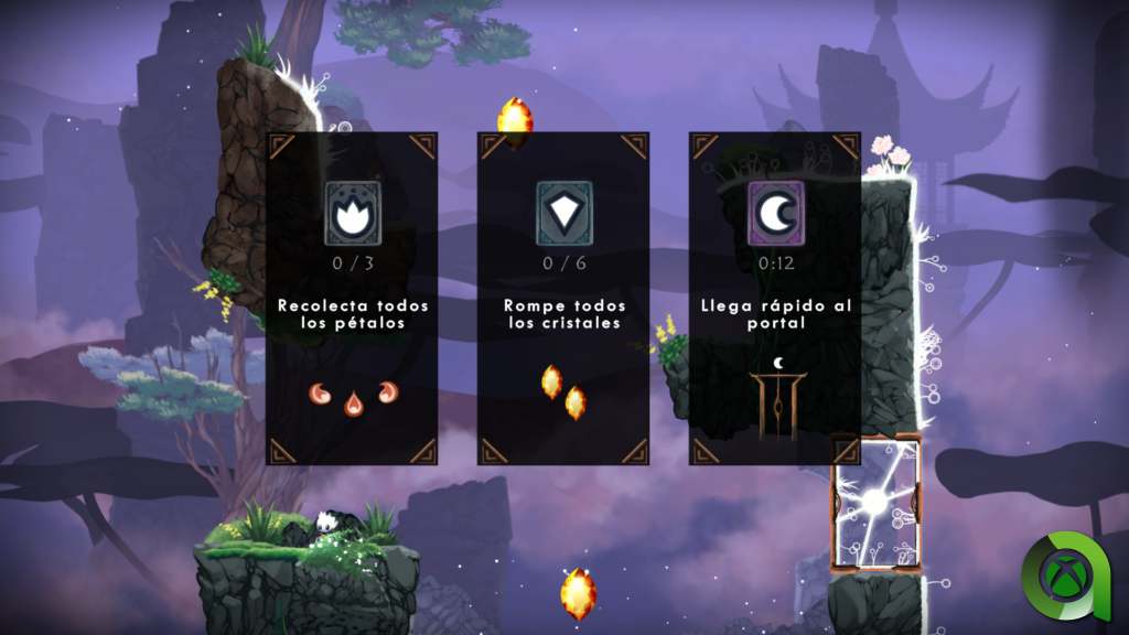 Cada nivel ofrece una serie de retos (coleccionar todos los pétalos, romper todos los cristales del nivel, etc.). Completarlos nos otorgará más experiencia. ¿Y qué podemos hacer con esa experiencia?