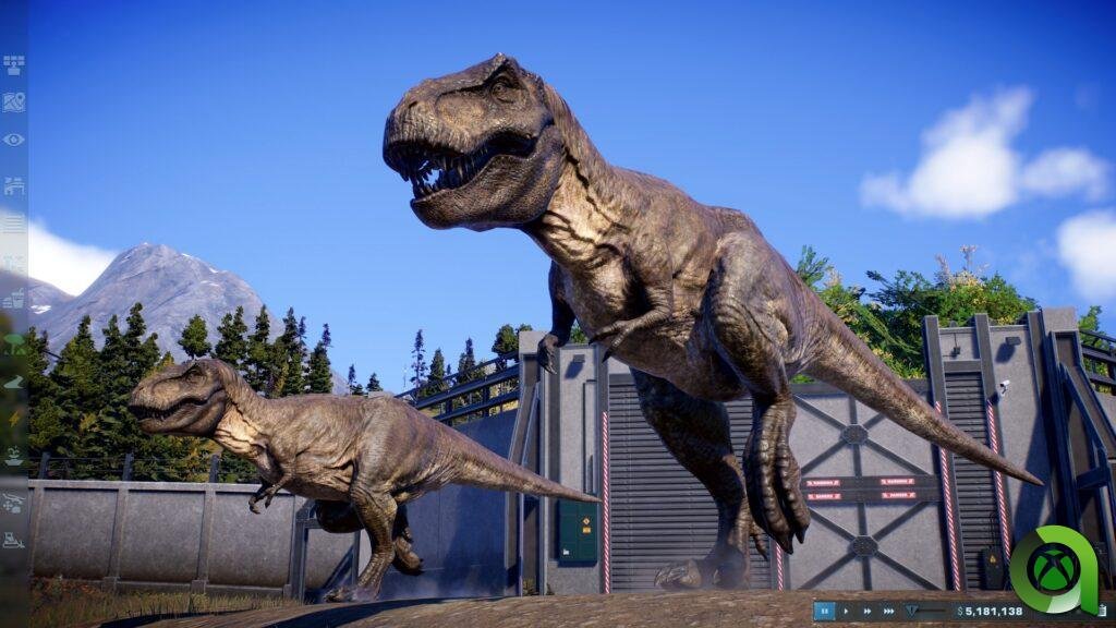 De igual forma, los hábitats de los dinosaurios y todo lo que los rodea ha sido mimado hasta el mínimo detalle. Contando así con unos escenarios muy llamativos y variados dependiendo del dinosaurio y de la localización geográfica de nuestro parque. Esto mismo se extrapola a los edificios, los cuales cuentan con diferentes diseños dependiendo de la época o película en la que nos encontremos. Esto se debe a que gracias al modo Teoría del Caos podremos revivir todo lo acontecido en las películas de la franquicia. Con todo esto, te podrás hacer una idea de que el apartado gráfico del juego cumple con creces. De hecho, el único problema destacable es la distancia de dibujado, la cual en algunas ocasiones puede ser realmente baja y algún que otra bajada del framerate.