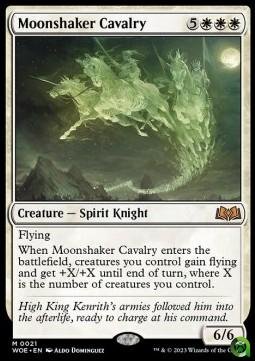 El carácter multicolor de este tipo de cartas hacen que muchos de los mazos predominantes del formato utilicen varios colores. A pesar de esto, muchas barajas de criaturas blancas han obtenido un gran potencial gracias a la ya citada Caballería Agitalunas. Una carta que realiza un efecto similar a una carta muy popular como es el caso del Behemoth Cascocráter. Esta carta nos permitirá por 5 manás incoloros y 3 manás blancos dotar a todas nuestras criaturas de no sólo contadores adicionales, sino también de la habilidad de volar. Una carta espectacular que le otorga un gran impacto a los mazos de criaturas pequeñas tan característicos del color blanco.