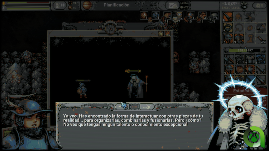 La progresión en Loop Hero es muy interesante, ya que no sólo conseguiremos nuevas cartas, sino que también se irán sumando nuevas mecánicas que afectan directamente a su jugabilidad. En este sentido tenemos que alabar el trabajo realizado por el equipo.