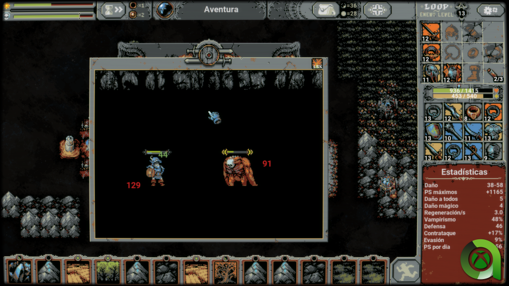 Dejando a un lado su apartado técnico, entramos de lleno en una jugabilidad que es sumamente adictiva y que hacen que este título se haya convertido en todo un éxito. La jugabilidad de Loop Hero, es en esencia algo sencillo, pero que guarda en su interior una gran complejidad que se va mostrando a cada paso que demos.