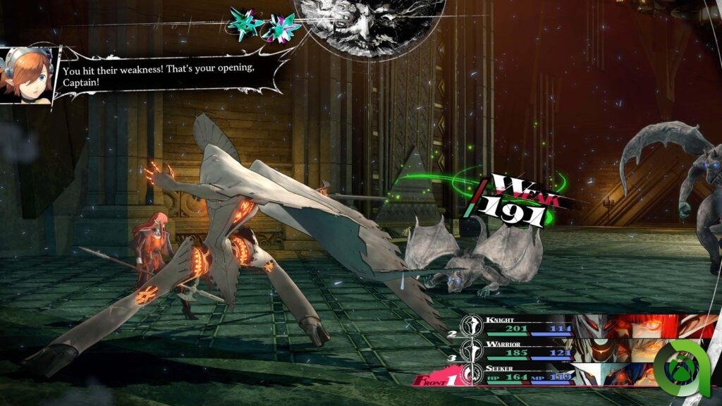 Como es habitual, los juegos de la buena gente de Studio Zero son muy buenos en el combate por turnos. En Metaphor ReFantazio van un paso más allá, los turnos constarán de “chispas” que marcarán los movimientos que podremos realizar. En caso de realizar un ataque contra el que un enemigo sea débil, obtendremos un turno extra, o como denomina el juego gastaremos “medio turno” dando la oportunidad de obtener un movimiento adicional. Esto NO permite acumular de manera indefinida turnos para obtener una ventaja sobre el rival, esta situación solo puede producirse una vez por turno. Como es evidente, nuestros enemigos también cuentan con esta mecánica con la que apretarnos más las tuercas.