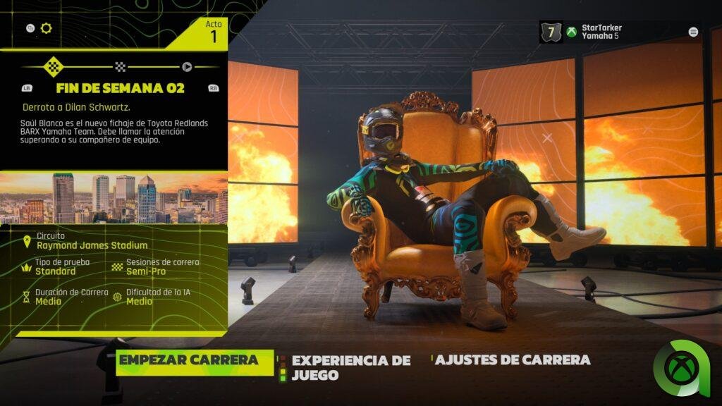 Como mencionaba anteriormente, el modo trayectoria es el plato fuerte habitual en Milestone. En Monster Energy Supercross 25 no es la excepción. Con la estructura habitual de este modo, contamos con una ventana para mejorar nuestra moto, personalizar el piloto y la ventana principal. Es en esta pestaña donde recibimos las principales novedades del modo trayectoria. Ya que las redes sociales ganan cierto protagonismo en el juego.
