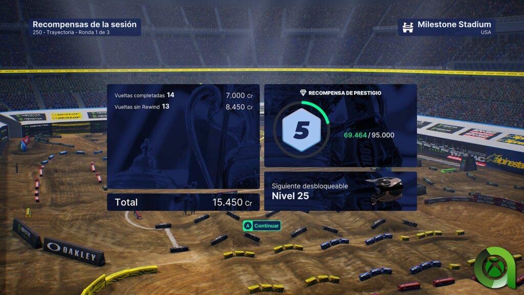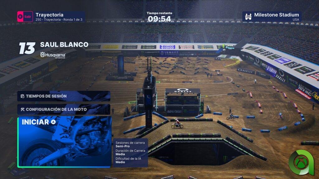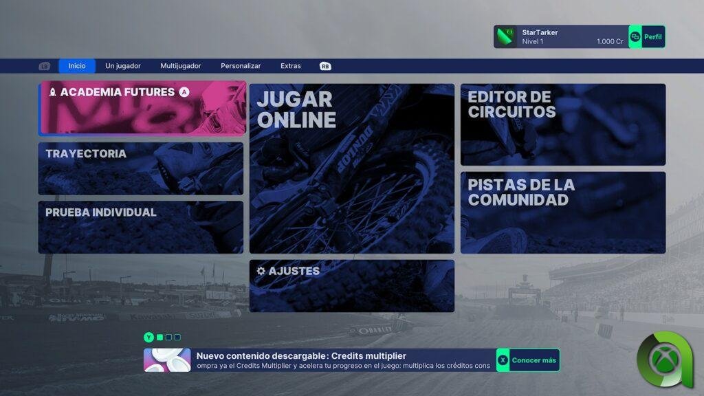 Una vez completemos el tutorial, tendremos a nuestra disposición todos los modos de juego que nos ofrece este título. Los primeros pasos que recomienda el juego es ir a la «Academia Futures». Viene a ser una ampliación del tutorial, donde expandiremos nuestros conocimientos sobre el control de la moto y un manejo óptimo de los saltos y control del peso del piloto a lo largo de distintas pruebas. El siguiente paso para ampliar nuestra leyenda en la Supercross es iniciarse en el modo Trayectoria. En este modo, iremos progresando desde la categoría de Futures para dar el salto a la categoría de 250cc y llegar a la categoría reina: 450cc. Conforme vayamos ascendiendo de categoría, el formato de las competiciones variará. Partiendo de una tanda clasificatoria a la de carrera hasta llegar a un fin de semana completo propio de la Supercross.