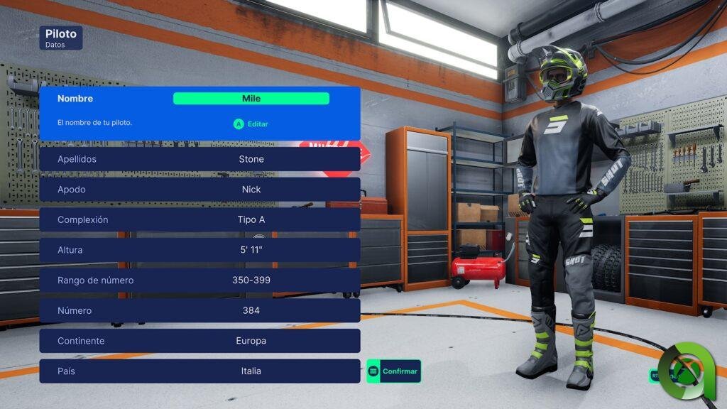 Nuestra aventura en este Monster Energy Supercross 5 comienza con la creación de nuestro propio avatar, que será una personificación de nosotros mismos. El juego pondrá a nuestra disposición un editor de personajes donde daremos forma a nuestro personaje personalizando desde la altura hasta el color de los ojos. Además, podremos seleccionar nuestro dorsal (que nunca podrá ser el de un piloto oficial), nacionalidad, nombre y demás parafernalia típica de un creador de personajes, incluyendo la animación de victoria. Cabe mencionar que el modelado de los personajes tiene margen de mejora. Se sienten poco naturales los modelados y animaciones faciales. Pero no debemos olvidar que el músculo del juego se centra en los circuitos, por lo que no es algo que condicione nuestra experiencia. Después de esto, empezará un tutorial donde nos enseñarán lo básico para rodar en los circuitos.