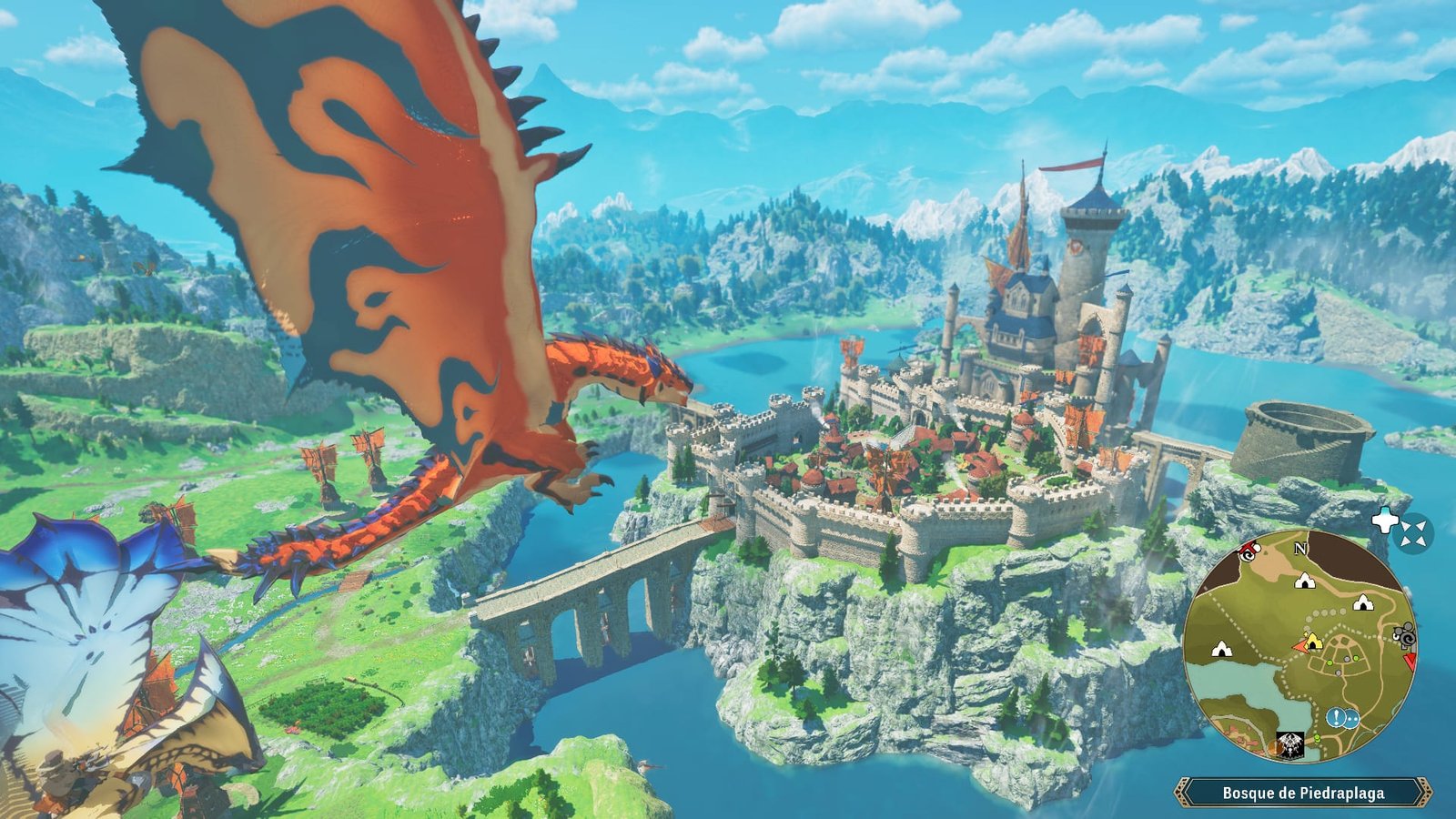 Lo primero que hay que tener claro con Monster Hunter Stories 3: Twisted Reflection, es que puedes disfrutarlo perfectamente aunque no hayas jugado a los títulos anteriores. La historia es independiente de los juegos previos, aunque siempre hay algún guiño. No obstante, aquí no encarnaremos a un rider, sino que, seremos el príncipe de Azuria. Quien será el poderoso jinete de un Rathalos cuerniazul. Un monstie que con su nacimiento y el de su gemelo, dará comienzo a un conflicto geopolítico con el rival vecino, Vermeill.