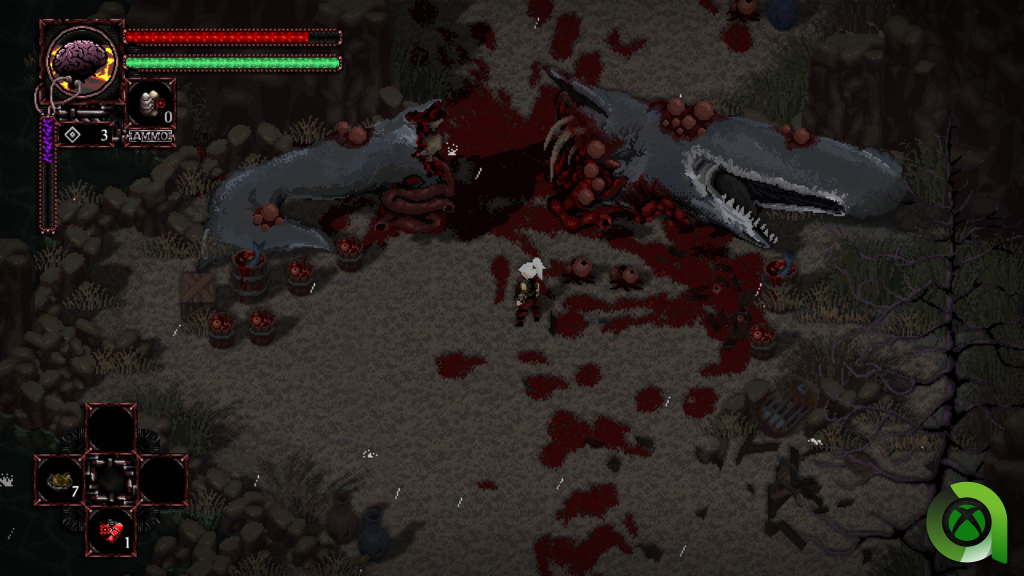 Por otro lado, es necesario destacar el buen hacer artístico con el que cuenta este juego. Estamos hablando de uno de los mejores pixel art que hemos visto en movimiento. Asimismo, este estilo gráfico viene aderezado por un diseño de personajes simplemente espectacular. Y es que, la crudeza de las escenas de Morbid: The Seven Acolytes es una constante y se representa en cada una de las criaturas del título.