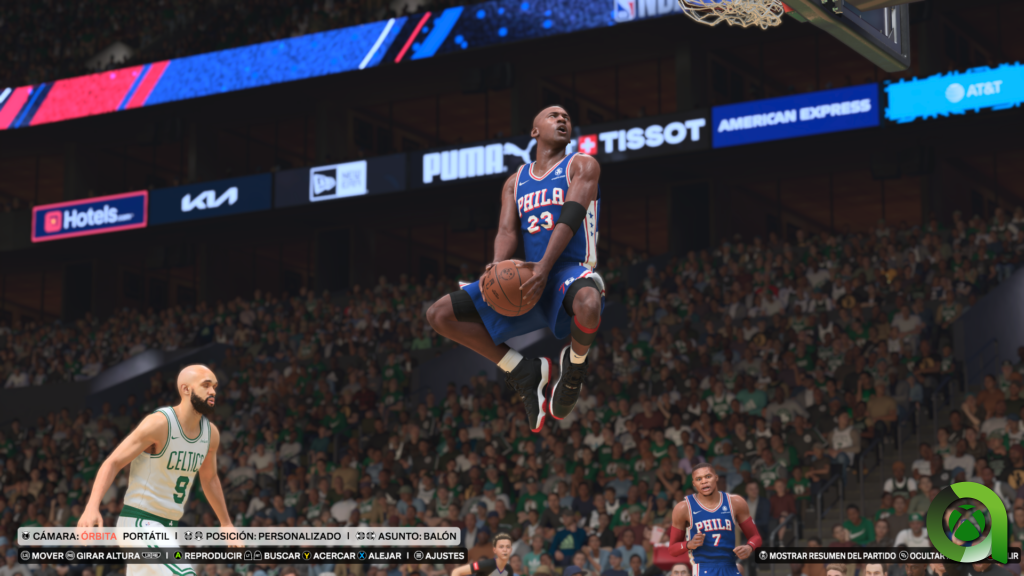Si ya en movimiento, NBA 2K25 luce realmente espectacular (sobre todo en su versión de Xbox Series X/S), es en los pequeños detalles donde se marca la diferencia más absoluta. Pero esto obviamente, no viene solamente de este año sino, como recordamos del análisis del año pasado, es una continua evolución sobre una base realmente buena. Cómo cada uno de los jugadores realiza gesticulaciones totalmente verosímiles sigue siendo algo que no hay que dejar de reseñar. Como recomendación, elegiría una cámara cercana para poder disfrutar de todo este espectáculo visual en movimiento.