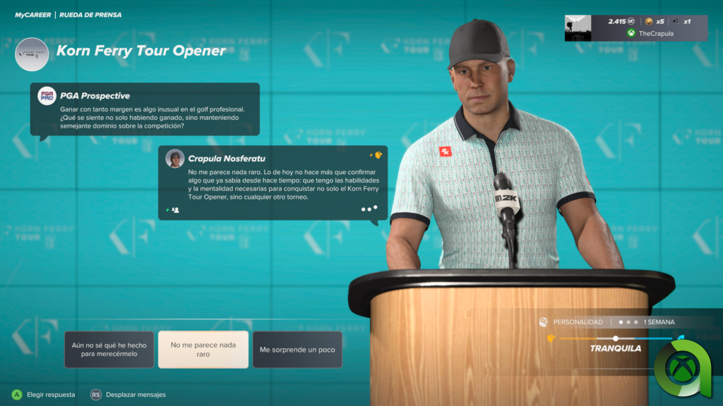 He jugado a PGA Tour 2K25 en una Xbox Series X, corriendo la versión de Xbox Series X/S. Antes de comenzar el análisis, queríamos agradecer a 2K el habernos facilitado un código digital que nos ha permitido disfrutar de esta experiencia de golf.