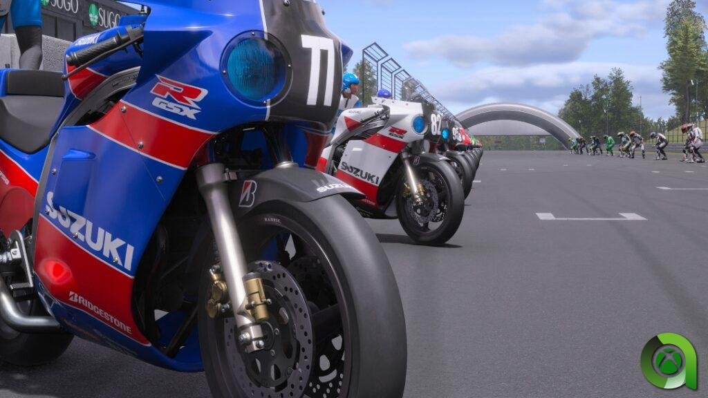 Con las motos sucede lo mismo, hay de todo tipo y de todas las épocas… Suzuki, Kawasaki, Aprilia, Honda, Ducati, las principales marcas están ahí. Nuestra colección irá aumentando a medida que corramos los diferentes actos del modo Trayectoria, sumando motos en forma de recompensa o adquiriéndolas con los créditos ganados. La presentación de las mismas refleja que, efectivamente, estamos ante un juego para entusiastas hecho por entusiastas. También se han incluido algunas animaciones de transición entre las carreras, y ahora podemos conseguir la mejor posición optando por la clasificación a una vuelta en todos los modos.
