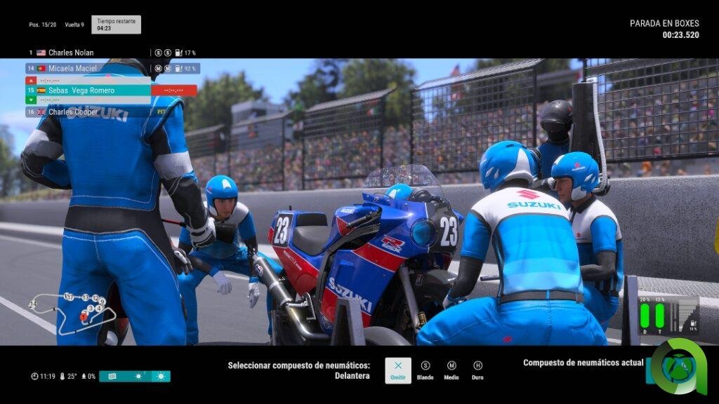 Si nos metemos de lleno en la pista, el sonido de las motos es tan realista como cabe esperar en un título de estas características. Cada modelo es único, al igual que su rendimiento, por lo que a nivel sonoro también pueden distinguirse unas de otras. El simple hecho de correr una contrarreloj por nuestra cuenta, es una experiencia divertida e inmersiva, acompañada por el satisfactorio petardeo del escape. Menos pulido está el ruido que podamos hacer al sufrir un accidente o rozarnos con otros rivales, pero personalmente no le doy tanta importancia.