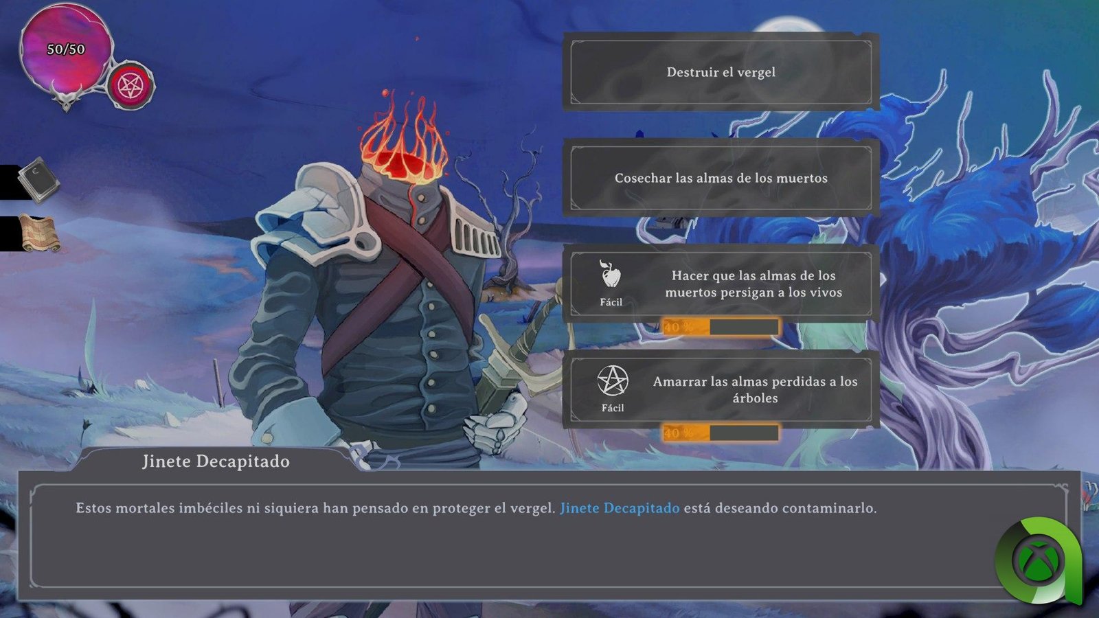 Puede que todo este que te estoy contando llegue a abrumarte, pero tranquilo, recuerda que esta vez somos el Diablo. Esto quiere decir que no jugaremos siempre siguiendo las normas. Gracias a la esencia diabólica, podremos realizar todo tipo de acciones de lo más inverosímiles. Algunos ejemplos son la reducción de la vida de nuestros enemigos, la resurrección de nuestros esbirros o bien la creación de portales para acortar el camino hacia algún punto del mapeado. Eso sí, todo ello tiene un coste y cuando nuestra esencia llegue a cero habremos perdido la partida.