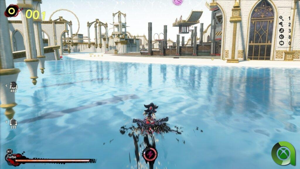 Todo en Shadow Generations está pensado para agilizar la partida, valiéndonos del combate para avanzar al mismo tiempo que acabamos con nuestros enemigos. También podremos lanzar rayos, ralentizar el tiempo o surfear en zonas de agua de cara a superar ciertas fases, o simplemente para facilitarnos la partida cuando lo decidamos. Personalmente creo que le sientan muy bien estas mejoras, sintiéndose como un soplo de aire fresco para esta saga en 3D.