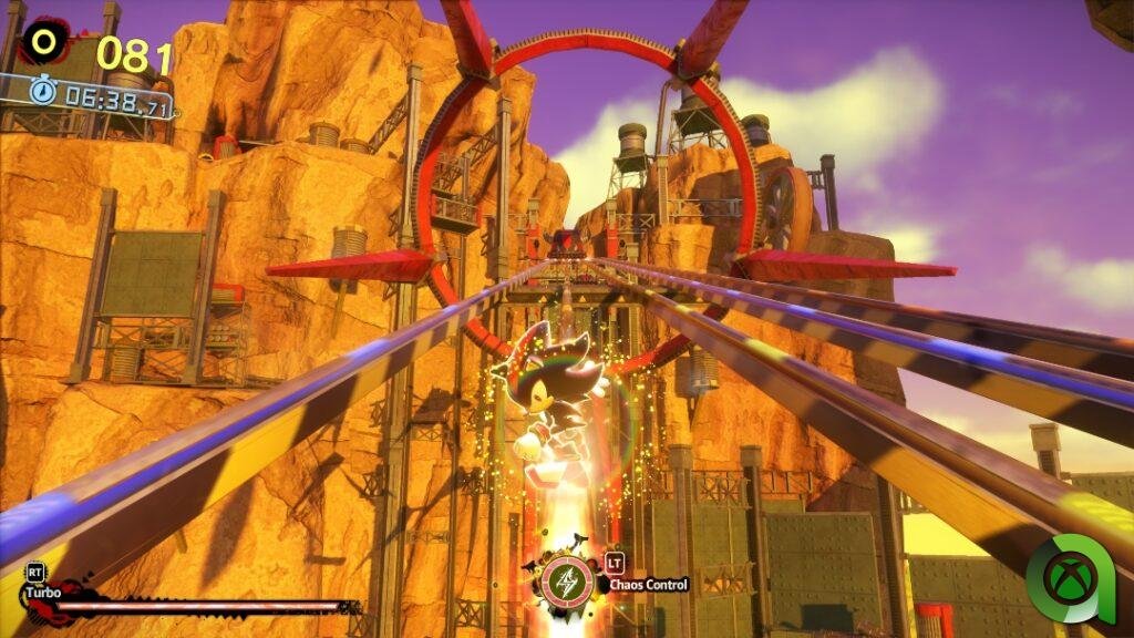 Con Shadow se mantiene ese mismo espíritu, esta vez llevándonos por nuevos escenarios, algunos de ellos muy futuristas, mientras que otros nos llevarán por entornos naturales o edificaciones en ruinas. Un cambio de aires que, sin embargo, mantendrá esa sensación de familiaridad en aquellos fans que ya disfrutasen de Sonic Generations. Eso sí, esta vez se ha optado por un nuevo motor gráfico para dar vida a Shadow, el cual cuenta también con opción de modo rendimiento y calidad. En el caso de Generations se trata de una puesta a punto visual, centrado en la mejora de texturas y resolución, pero poco más.