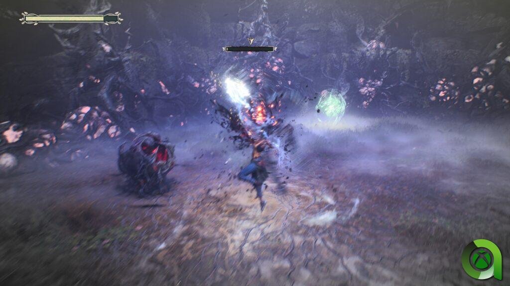 En cuanto a los jefes finales, tampoco serán un gran reto puesto que, como sucede con los enemigos comunes, repetirán patrones. Lo que sí cabe destacar positivamente de ellos, es su diseño. En concreto y sin ánimo de realizar ningún spoiler, me quedo con uno que me ha encantado. Las batallas contra ellos no serán muy complicadas, cuentan con 3 o 4 grandes barras de vida. Si morimos durante una de estas barras, no reiniciaremos desde el inicio, sino desde aquí pero con toda la barra de vida llena y la posibilidad de recoger el orbe de salud correspondiente.