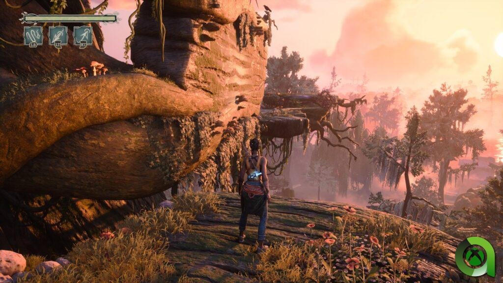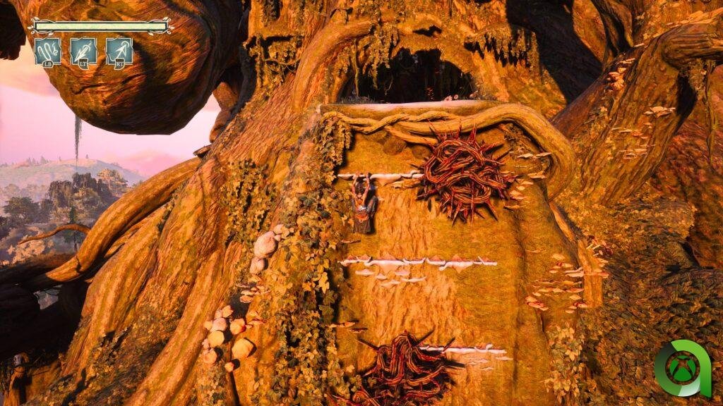 En el entorno que rodea al escenario, encontramos estos pequeños espacios para la exploración. Estos funcionan de una manera muy orgánica, y sentiremos la necesidad de explorar todo lo que veamos. Las recompensas van desde una especie de orbes que nos servirán para desbloquear y mejorar el árbol de habilidades, notas que nos aportarán un valor narrativo adicional hasta objetos que mejorarán nuestra vitalidad máxima.