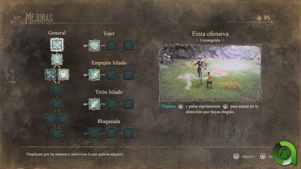 ¿Es por ello un mal combate? No, ya que por suerte y aquí sí recomiendo jugarlo en la dificultad máxima que nos propone el título, tendremos que medir bien nuestros movimientos y las habilidades que portemos. Podremos lanzar un hilo capturador al enemigo, realizar un empujón (con «la fuerza»), atraerlos hacia nosotros o incluso dominarlos y provocar que luchen durante unos segundos en nuestro bando. Por otro lado, contamos con un ataque principal que manteniendo el botón «X» podremos cargar y, un esquive que será imprescindible su uso. En el árbol de habilidades podemos desbloquear nuevas habilidades y potenciar las que ya teníamos adquiridas.