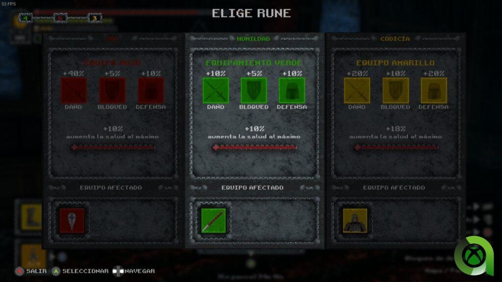 Ya sabéis que soulslike implica tener una barra de stamina (energía), diferentes builds (sets de equipamiento) con los que ir probando hasta dar con la que nos resulte más cómoda, esquivar, hacer parries, etc. Eso sí, aquí no contamos con niveles que podamos subir para aumentar nuestro poder, pero sí que encontramos altares a lo largo de cada fase, los cuales servirán para incrementar nuestra salud o fuerza, entre otras cuestiones.