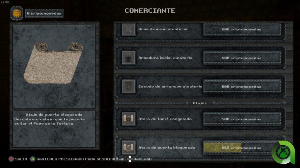 Aunque tampoco quiero mentiros. Sí, vais a estar repitiendo las mismas zonas y jefes una y otra vez (a no ser que compréis en el mercader un atajo que os permitirá saltaros niveles). Al fin y al cabo, en eso se basa un roguelike. De hecho, realmente hay pocos niveles en esta aventura, y son bastante cortos, bastando con avanzar eliminando monstruos y encontrar la salida. Esto es así porque la gracia está en que, una vez derrotado el jefe final, volvemos a empezar de cero con la opción de aumentar la dificultad del viaje, cambiando ciertos elementos (por ejemplo, en la primera dificultad no necesitaremos ninguna llave para abrir puertas y avanzar, pero en las siguientes sí) y otorgándonos recompensas mayores.