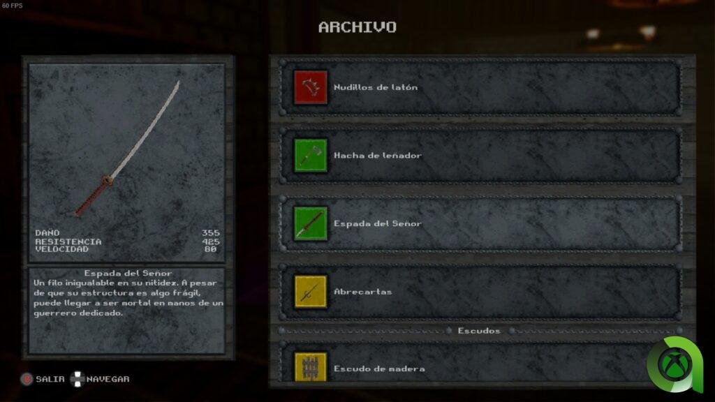 La temática es una medieval, con espadas, alabardas, hachas, armaduras de caballero, de ladrón, etc. Incluso en algunos niveles existirán trampas de pinchos con las que tendremos que estar ojo avizor constantemente para que no nos resten salud. Algo que se suma a lo complicado que resulta ver correctamente en este título, puesto que la oscuridad que hay es demasiado elevada y no existe ninguna opción para ajustar el brillo, si bien he podido comprobar que activar el filtro CRT ayuda un poco. Esperamos que esto pueda solucionarse en una futura actualización.