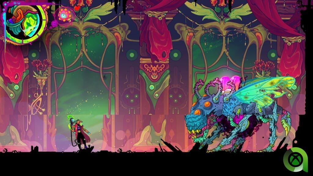 Si bien Ultros es un título perteneciente a la familia metroidvania, también esconde un marcado carácter rogue like tras su colorida apariencia. A diferencia de otros juegos, en este las mazmorras no surgen de forma aleatoria, sino que el mapeado es fijo e inmutable. El punto diferencial surge cuando morimos, pues dada esta circunstancia tendremos que empezar prácticamente desde el principio, perdiendo las habilidades ganadas hasta ese momento.