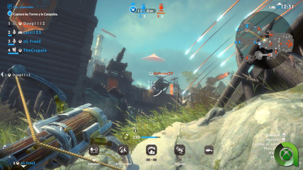 Esto va de asaltar castillos, y aunque en un primer momento nos veamos abrumados por la pericia de nuestros compañeros/oponentes; partida tras partida iremos encontrando nuestro lugar. Tendremos que defender nuestro castillo, a la vez que conquistaremos diversas torres ubicadas por todo el escenario lo que nos proporcionará mejores puntos de aparición. Por todo el escenario encontraremos ítems que nos permitirán sacar ventaja de las situaciones. Principalmente, el uso de ballestas, cañones, etc. nos acercarán más hacia nuestro objetivo y en situaciones defensivas, destruiremos el equipamiento del equipo contrario.
