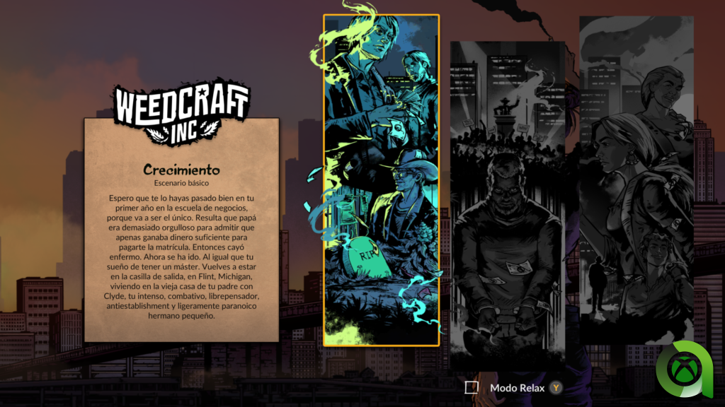 En Weedcraft Inc se ha optado por un enfoque narrativo para el título de gestión. Cuando salió en PC no existía un modo libre donde tú pudieras configurar la partida e ir evolucionando tu imperio de la hierba a tu ritmo sino que el juego te obligaba a jugar siempre una campaña. Esto podía resultar un suplicio si la partida no te salía bien y te tocaba empezar desde cero de nuevo. Con su salida en consola en 2023, podemos decir que estamos disfrutando de la mejor versión del juego ya que se han incluido tanto un modo libre como una historia más.