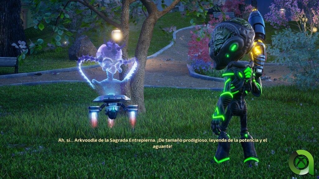 Hay algunos detalles mejorables. No me he cruzado con muchos bugs, pero he de decir que algunos llaman notablemente la atención, como pueden ser los NPC´s que aparecen girando sobre sí mismos en los tejados de los edificios. No es nada aparatoso, pero si optamos por movernos por zonas elevadas, pueden darse en más de una ocasión. Lo mismo sucede con la carga tardía de texturas, generalmente durante los diálogos y cinemáticas. Aún así, la esencia renovada de esta secuela no solo está a la altura, sino que nos hace soñar con un futuro Destroy All Humans! mucho más grande.