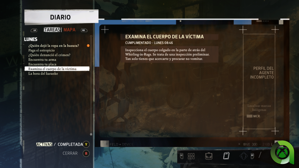 Aquí no hay combates, por lo que todo recae sobre la narrativa y la exploración. Respecto a esta última, el juego da libertad suficiente para perdernos por sus escenarios, pudiendo interactuar con muchos elementos del mapeado. Toda información es poca para seguir adelante, y a su vez, expandir las habilidades y conocimientos de nuestro particular agente. Debo aclarar que, aunque en varias ocasiones la pantalla se congelaba, es algo que se corregirá con un parche de lanzamiento. Los propios controles tampoco responden lo suficientemente bien, pero la solución ya se ha confirmado por parte de sus responsables.