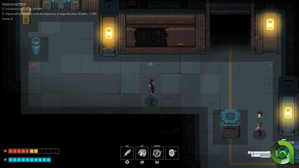 Podemos clasificar a este juego como un RPG clásico en 2D. Nuestro objetivo en Disjunction es infiltrarnos en edificios con el fin de descubrir documentos o información para ir avanzando en la trama. En este sentido podemos hacerlo al más puro estilo Solid Snake, mediante la infiltración, o a tiro limpio.