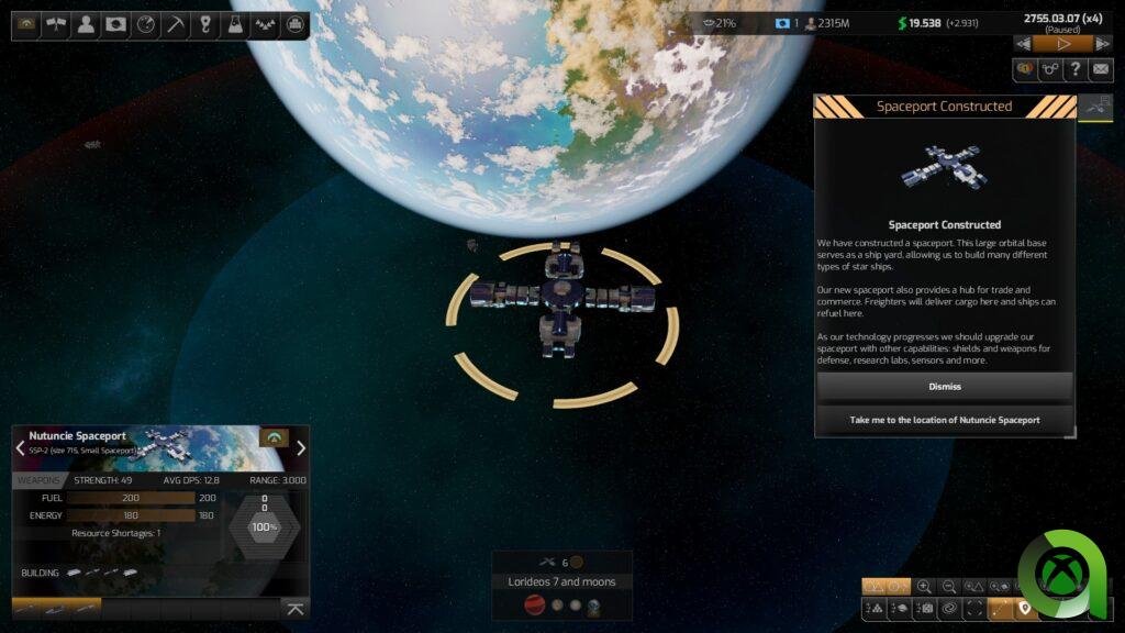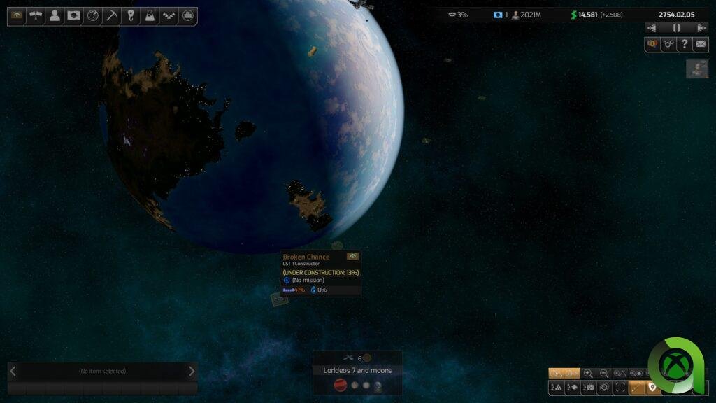 Conforme avanzamos en la partida, el propio juego nos va sugiriendo construir X número y tipo de naves o construir estaciones de minería. Esto se lleva a cabo a través de ventanas emergentes. Todos estos procesos automatizados, pueden llevarse a cabo de forma manual desactivándolos en los propios edificios o naves del juego. El verdadero punto donde se expande la experiencia jugable es una vez desbloqueamos por investigación los motores hiperespaciales. Que nos permitirán expandir las fronteras de nuestra civilización a más sistemas estelares, proporcionándonos nuevos planetas colonizables y otros con posibilidades de explotar sus recursos.