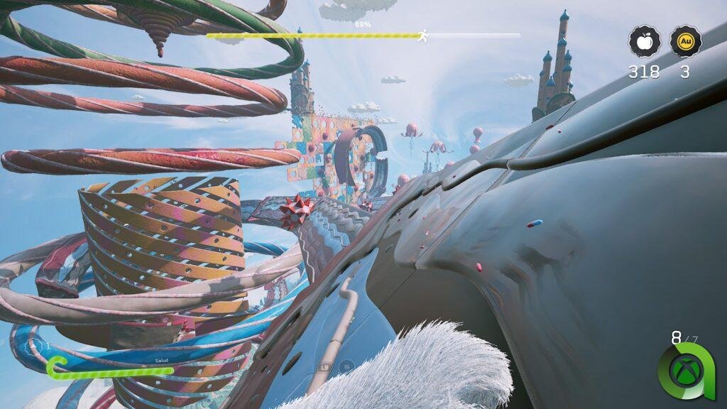 En las zonas intermedias encontraremos combates contra jefes o supervivencia contra enemigos de lo más extravagantes, cuya forma de vencerlos es similar a lo que podría ser un minijuego. Durante todo el viaje, podremos recoger monedas doradas que nos servirán para desbloquear skins de armas para el juego base. Así como manzanas rojas, con la función de gastarlas para desbloquear nuestras armas y habilidades (para uso exclusivo en este DLC), y mejorarlas.