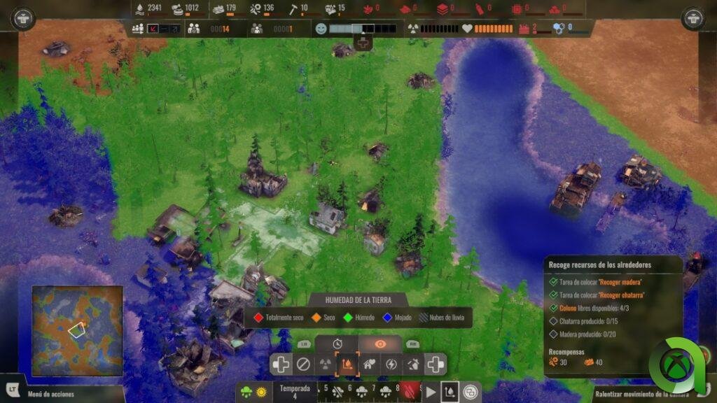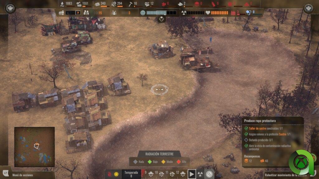 Tras un desastre nuclear, este páramo natural aparentemente inofensivo, amenazará la seguridad de nuestros colonos mediante la radiación y las inclemencias del tiempo. Hay que decir que, en este sentido, sus desarrolladores han hecho un excelente trabajo a la hora de recrear los efectos de la lluvia, el viento o las tormentas de arena. Algo que siempre podremos observar en el menú de la parte inferior de nuestra pantalla, prediciendo lo que se nos viene mientras avanzamos en el tiempo.